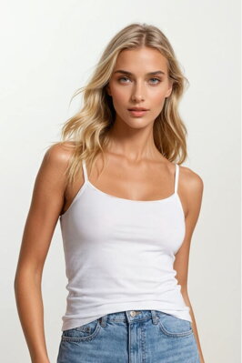 Dámský bavlněný nátělník na úzkých ramínkách, zdobený krajkou ve...