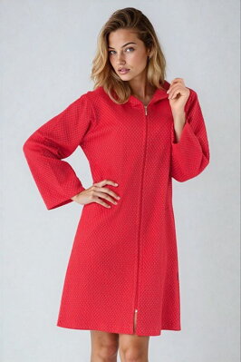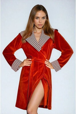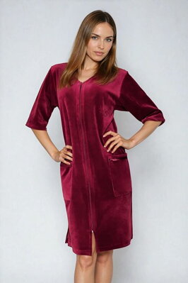 Velurový vínový župan se zapínáním na zip s rukávy ve 3/4 délce.