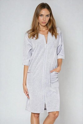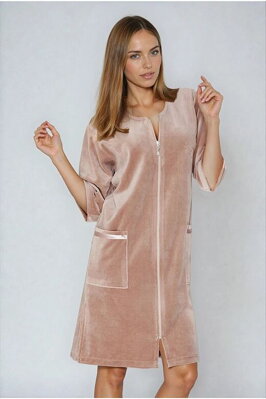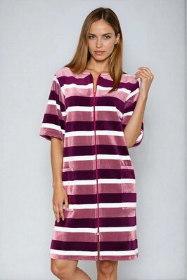 Velurový dámský župan v barvě lila se zapínáním na zip a 3/4...