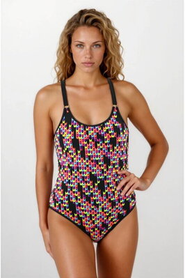 Jednodílné plavky Mina černé barevný vzor