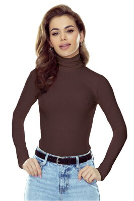 Dámský hnědý rolák z viskózy a elastanu s dlouhým rukávem, jemně...