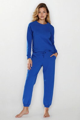 Modré dámské pyžamo má komfortní střih, je bavlněné a má působivý...