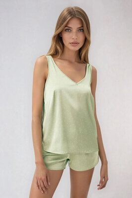 Dámské pyžamo Madlena má světle zelenou barvu a jemný vzor listů.