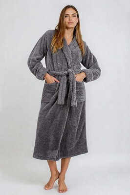 Dlouhý huňatý župan Eliza šedý