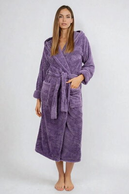 Dámský huňatý župan s kapucí, delšího střihu cca 120 cm v fialové /...