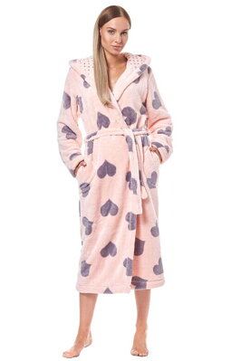 Dlouhý dámský župan Kola růžový srdíčka