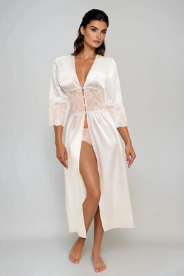 Saténový dámský župan ecru (mléčně bílé) barvy v délce cca 90 cm.