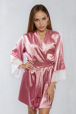 Dámský saténový župan s působivou jemnou květinovou krajkou na...