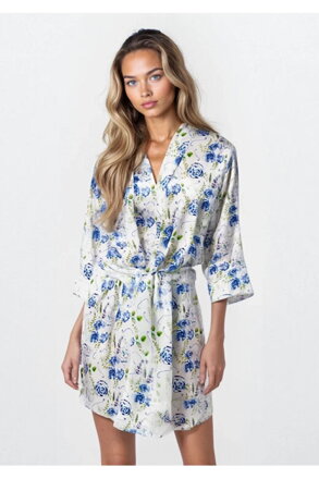 Saténový župan s jemným květinovým vzorem v délce cca 90 cm.