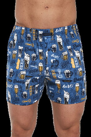 Pánské trenýrky mají velice pohodlný střih, modrou barvu a oblíbený vzor s pivem.