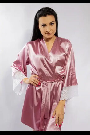 Dámský saténový župan má zdobené rukávy zakončené krásnou vyšívanou krajkou.