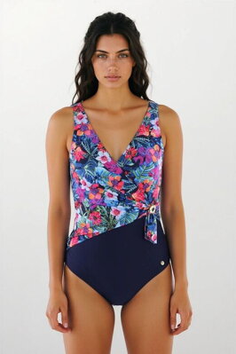 Jednodílné plavky Lagos modré s květy zeštíhlující