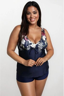 Pohodlné černohnědé tankiny s krásným květinovým vzorem na předním...