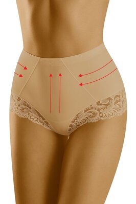 Dámské stahovací kalhotky tělové barvy jsou zdobené krajkou.