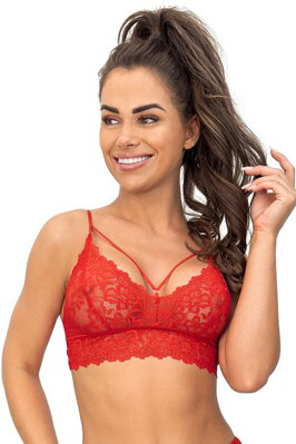 Červená krajková braletka bez kostic a výztuže, pružná a pohodlná s...