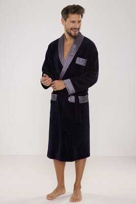 Velurový pánský župan Bonjour dlouhý modrý