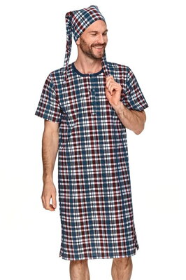 Pánská noční košile a noční čepice Alex modré káro