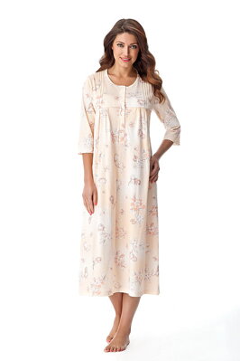 Klasická dlouhá noční košile má 3/4 rukávy a zapínání na knoflíčky.
