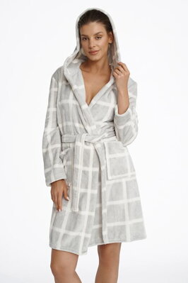 Dámský župan se vzorem kostky má stylovou bílo-šedou barvu a hebký...