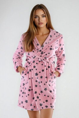 Mikroplyšový župan Astra růžový s hvězdičkami