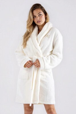 Dámský huňatý župan Glamour ecru s výšivkou