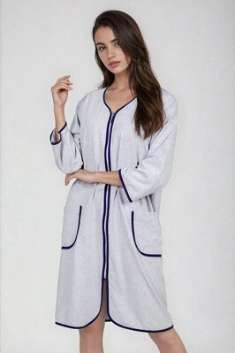 Bavlněný župan Denisa šedý s modrým lemem