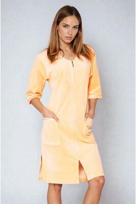 Velurový dámský župan v barvě lila se zapínáním na zip a 3/4...