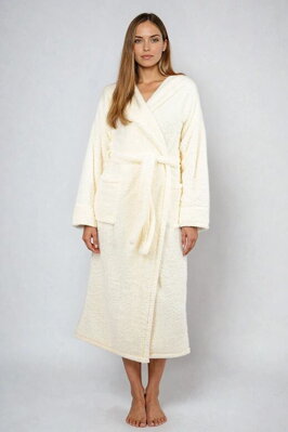 Dlouhý huňatý župan Diana ecru s kapucí